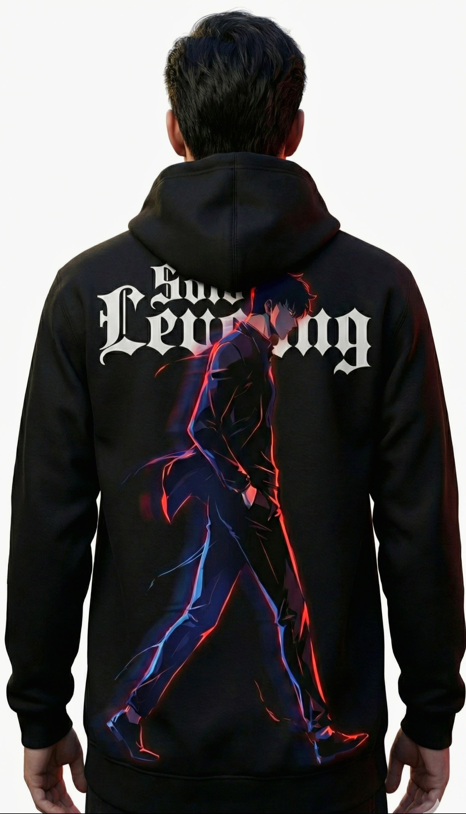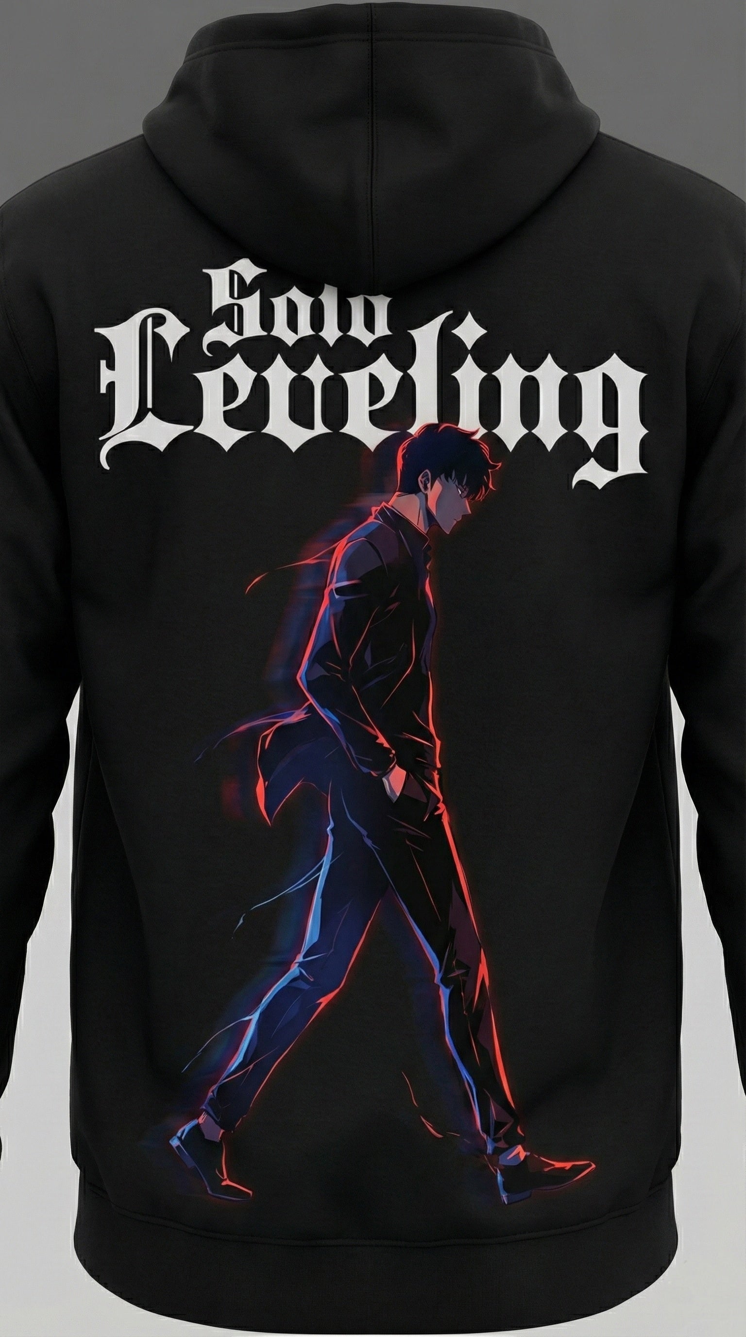 Embody the power of the E-Rank hunter turned Shadow Monarch with this premium Solo Leveling Graphic Hoodie. Designed for fans who demand quality and style, this piece features a striking, high-definition back print of Sung Jin-Woo in his signature stoic stride.